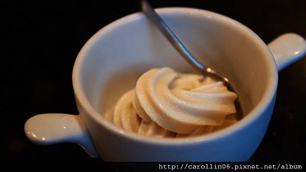 飯後甜點3選一,不過我們幾乎都是點芝麻冰淇淋,看起來是很普通的霜淇淋,不過吃起來的味道卻是很濃的芝麻味無誤,還算滿好吃的,不過份量也很少,搭配容器感覺不好。