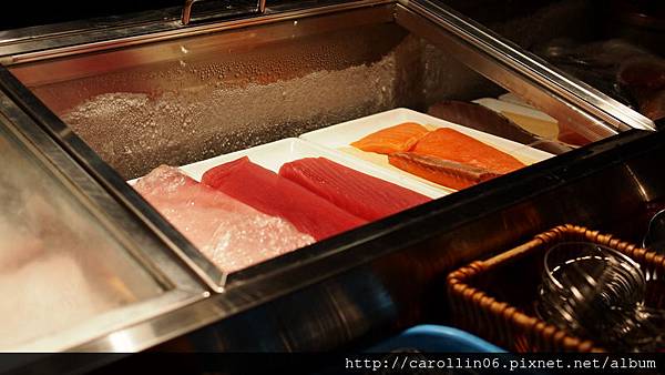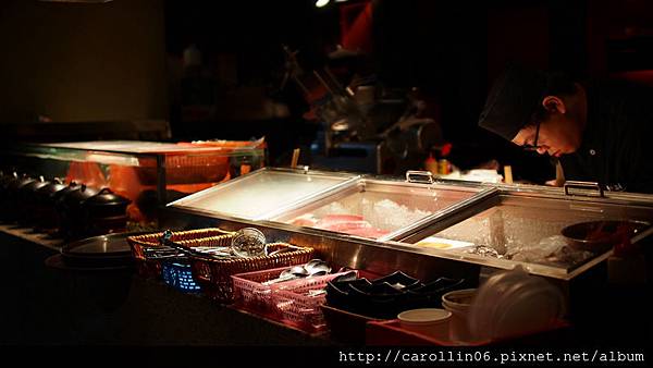 跑到切肉、切生魚片這邊來看看,這位師父讓我們不是太高興,明明後來我們這桌有少上一盤肉,他聽到我們向服務人員反應還直接用喊的說:「我明明就切兩盤出去!!!」
