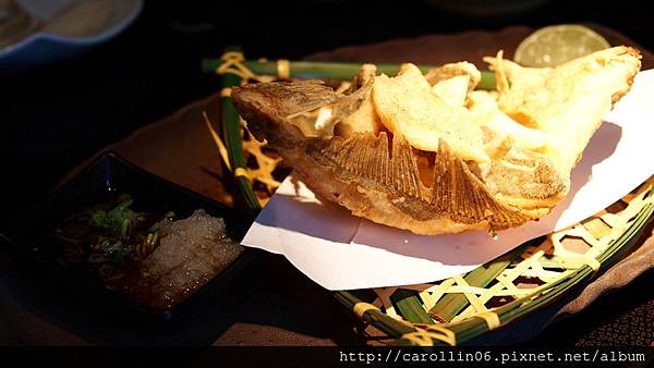 這個長的根本不明物體的東西是「炸比目魚」,也是香煎牛小排套餐的,說整個都可以食用,不過我很懷疑牙齒是否可以吃?他們都很喜歡,只有不大吃魚的我覺得無法接受。