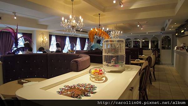 店內是以19世紀歐洲華麗巴洛克風格為主的去裝潢,不過我看了看照片後來在板橋大遠百開的新分店裝潢好像有不同的FU。那邊的分店在九樓威提斯廣場,有挑高空間去做歐洲街頭的感覺,不過又有一點像是在美食街的怪異感......