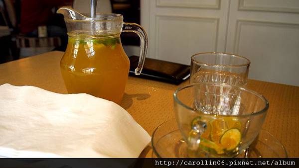 應該是金桔類的水果茶,分量不算太少,味道因為我一口都沒喝所以不予置評。