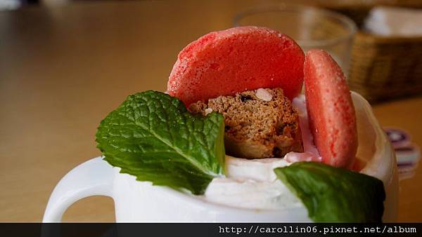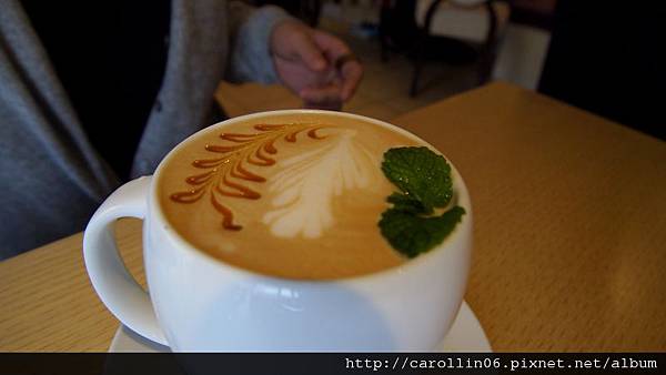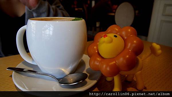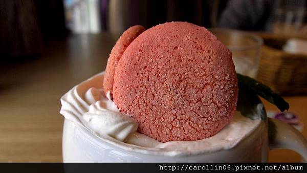 這杯是我點的馬卡龍歐蕾(熱),很可愛的一個飲料,可是味道不知道該怎麼形容,感覺就是甜滋滋的牛奶混鮮奶油,歸類在咖啡區我本來還期待多少會有一些咖啡味道。