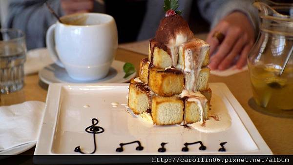 盤子上用巧克力醬畫上了音符,除了可愛之外,吃的時候也可以抹一抹這邊沾味道。