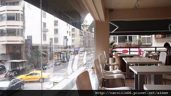 這間店的大面玻璃窗,是個很吸引人的地方,天氣好的時候,採光非常的好,重點是自然光拍食物的感覺我很喜歡。而下雨天就可以隔著窗戶,看水襲打著街景,感覺也很浪漫。