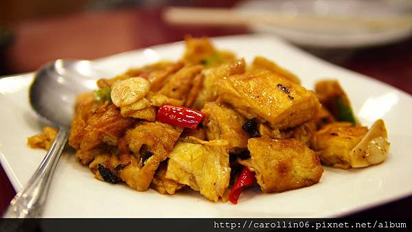 香辣炒蛋吃起來口感不錯,相當嫩的烘蛋切塊的感覺,不過蛋咬下去內外色差很大,味道總覺得就是少了什麼@_@