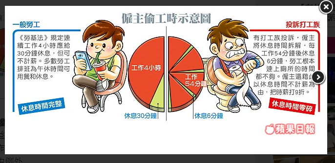 其實是否可以拆解成這種方式,個人還是覺得要依工作的型態來認定,不過我個人覺得雇主根本不是在看這一塊,反而是時薪的計算才是他們的攻防重點,休息時間本來就是「不計薪」,因此在休息時間將薪資做比例式的計算,看似合理,但這兩個例子前後比對,卻可以看出這變相的做法足足少了60元,這才是一個不能說的秘密!